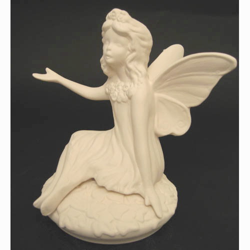 Réf. 10-052 elfe assise sur socle mobile, groupe de deux figurines, L 18 x l 16 x h 18 ; biscuit de faïence fine (céramique brute à peindre ou à émailler)