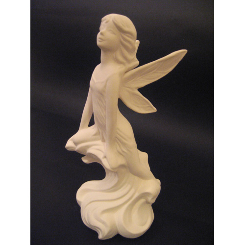Réf. 10-068 elfe sur vague, figurine, L 12 x l 11 x h 27,5 ; biscuit de faïence fine (céramique brute à peindre ou à émailler)