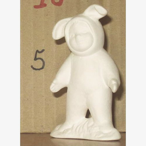 Réf. 05-046-2 enfant déguisé en lapin, figurine, h 9 ; biscuit de faïence fine (céramique brute à peindre ou à émailler)