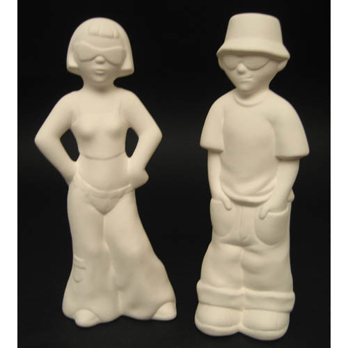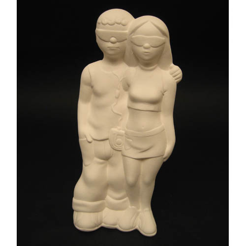 Réf. N°165 teenagers fille et garçon, figurine, L 8,5 x l 5,5 x h 20 ; biscuit de faïence fine (céramique brute à peindre ou à émailler)