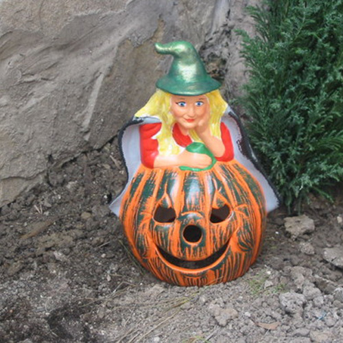 Réf. 15-004a sorcière pensante sur citrouille, figurine / photophore peint, h 24