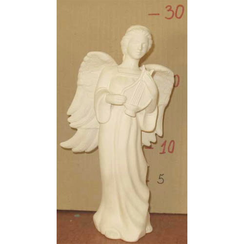 Réf. 14-059 ange avec lyre, figurine, h 29 ; biscuit de faïence fine (céramique brute à peindre ou à émailler)