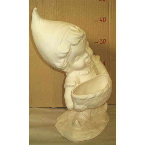 Réf. 10-083 naine / lutine de l'univers des elfes, figurine / cache-pot, h 50 ; biscuit de faïence fine (céramique brute à peindre ou à émailler)