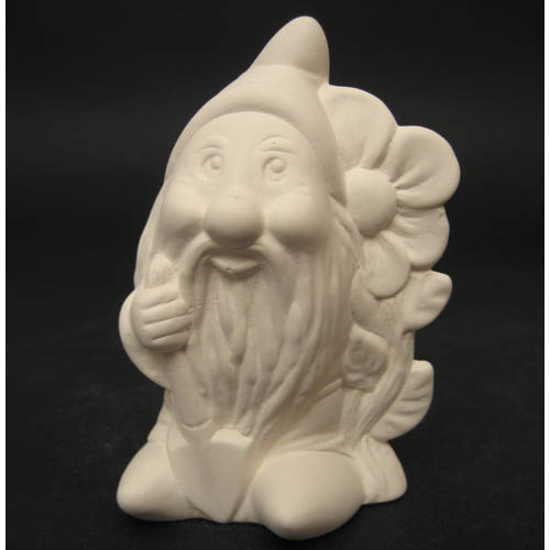 Réf. N°117-1 nain avec fleur, figurine, L 7 x l 6 x h 10 ; biscuit de faïence fine (céramique brute à peindre ou à émailler)