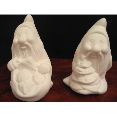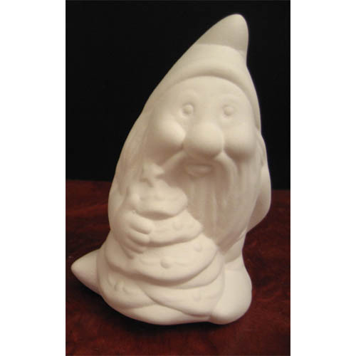 Réf. N°117-3 lutin avec cadeaux, figurine, L 9 x l 6 x h 9 ; biscuit de faïence fine (céramique brute à peindre ou à émailler)
