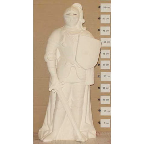 Réf. 16-076 chevalier, figurine, L 22,5 x l 17 x h 53 ; biscuit de faïence fine (céramique brute à peindre ou à émailler)