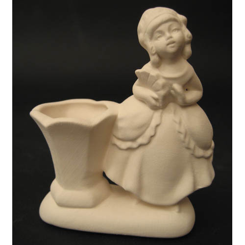 Réf. 16-087-2 princesse, vase / porte-crayons, L 8 x l 4 x h 9,5 ; biscuit de faïence fine (céramique brute à peindre ou à émailler)