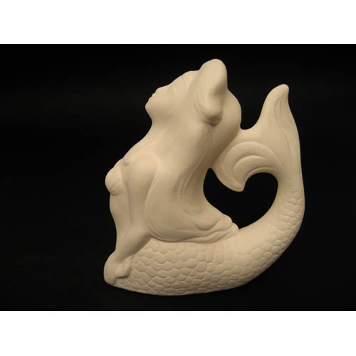 Réf. N°067 sirène, figurine, L 16 x l 13 x h 16 ; biscuit de faïence fine (céramique brute à peindre ou à émailler)