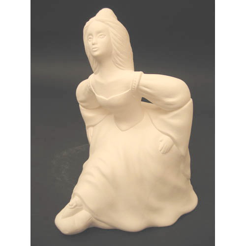 Réf. N°074 princesse, figurine, L 8,5 x l 8 x h 12,5 ; biscuit de faïence fine (céramique brute à peindre ou à émailler)