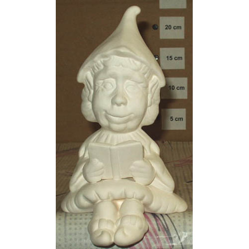 Réf. 02-007 trolle femme lisant, figurine, L 14 x h 26 ; biscuit de faïence fine (céramique brute à peindre ou à émailler)