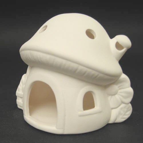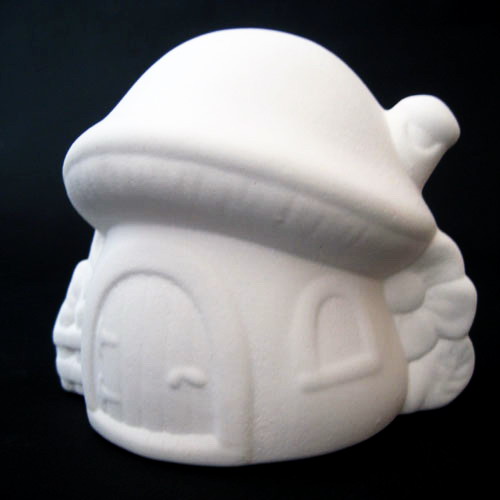 Réf. N°098 champignon, photophore, L 12,5 x l 10 x h 10 ; biscuit de faïence fine (céramique brute à peindre ou à émailler)
