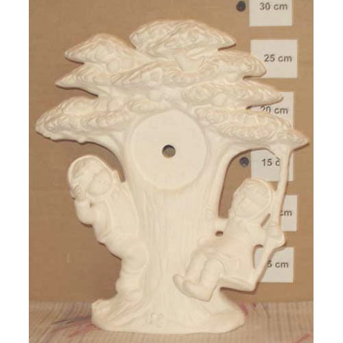Réf. 16-080 arbre et deux enfants, cadran de pendule, h 29 ; biscuit de faïence fine (céramique brute à peindre ou à émailler)