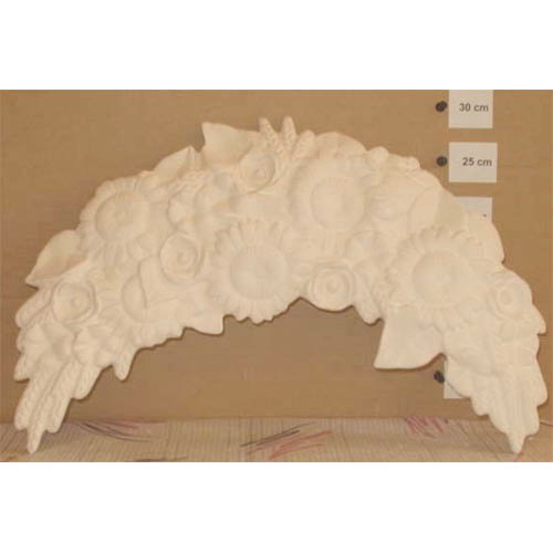 Réf. 12-003 tournesols, semi-couronne murale, L 45 x h 28 ; biscuit de faïence fine (céramique brute à peindre ou à émailler)