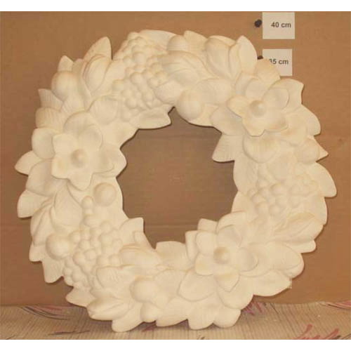 Réf. 12-005 magnolia, couronne murale, diam. 40 ; biscuit de faïence fine (céramique brute à peindre ou à émailler)
