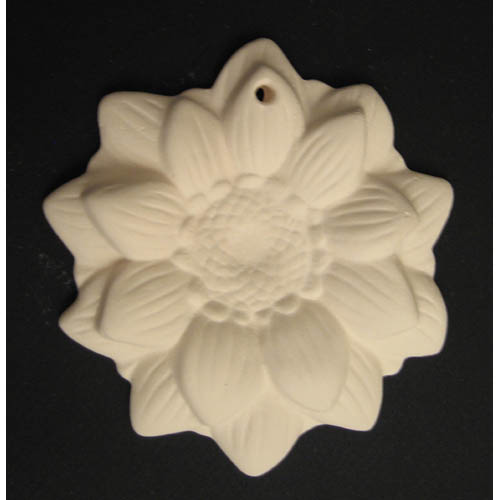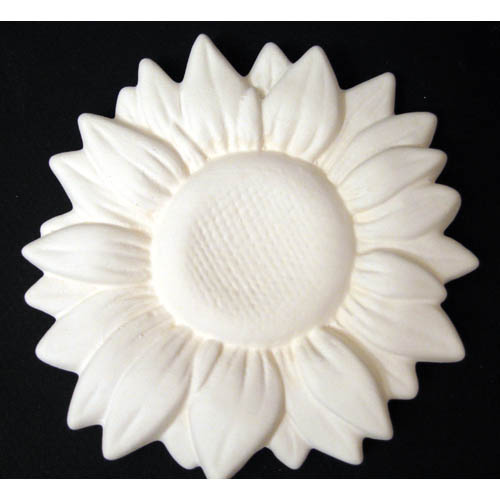 Réf. 12-009 tournesol, figurine / sous-plat, diam. 26 ; biscuit de faïence fine (céramique brute à peindre ou à émailler)