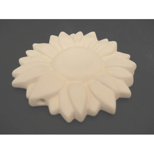 Réf. 12-035-1 tournesol, figurine / sous-verre / porte-couteau, Ø 11 x h 1,7 ; biscuit de faïence fine (céramique brute à peindre ou à émailler)