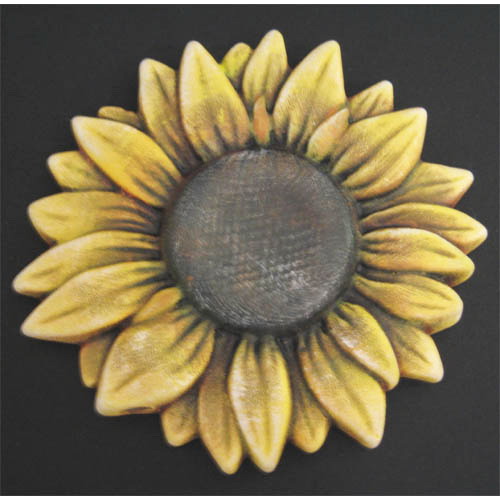 Réf. 12-010 tournesol, vide-poche / porte cuillère / sculpture murale, L 20,5 x l 11 x h 2 ; biscuit de faïence fine (céramique brute à peindre ou à émailler)