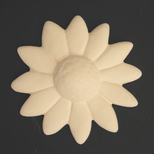 Réf. 12-037-1 marguerite, figurine, dos plat, diam. 7 x h 1 ; biscuit de faïence fine (céramique brute à peindre ou à émailler)