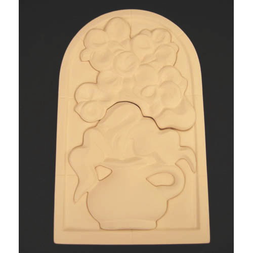 Réf. N°137 vase, sculpture murale de 3 parties, L 14,5 x l 1,5 x h 23,5 ; biscuit de faïence fine (céramique brute à peindre ou à émailler)