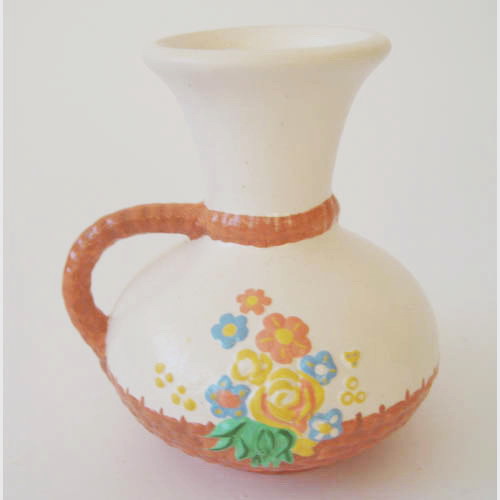 Réf. N°014a vase décoré de fleurs, figurine peinte, L 7 x l 6,5 x h 7,5