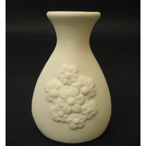 Réf. N°014 vase décoré de fleurs, figurine, L 7 x l 6,5 x h 7,5 ; biscuit de faïence fine (céramique brute à peindre ou à émailler)