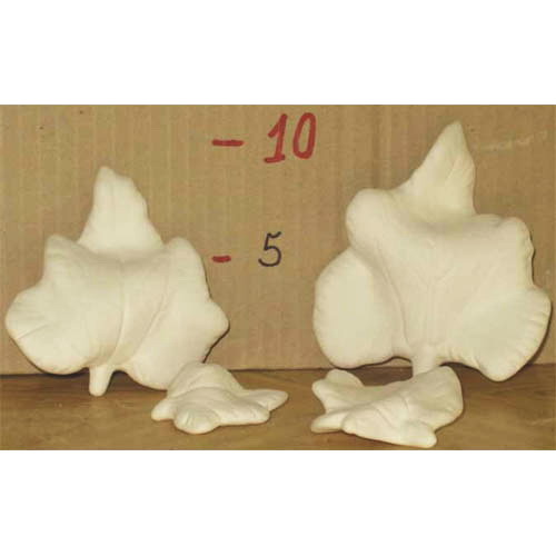 Réf. 12-026 feuilles de citrouille, groupe de quatre figurines, L 5, L 6, L 8, L 11 ; biscuits de faïence fine (céramique brute à peindre ou à émailler)