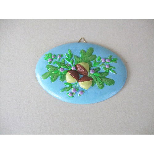 Réf. 13-103av glands, plaquette murale peinte, L 14,5 x l 2 x h 10,5 (cf. la galerie des artistes partenaires : Anne-Marie Lefaivre)