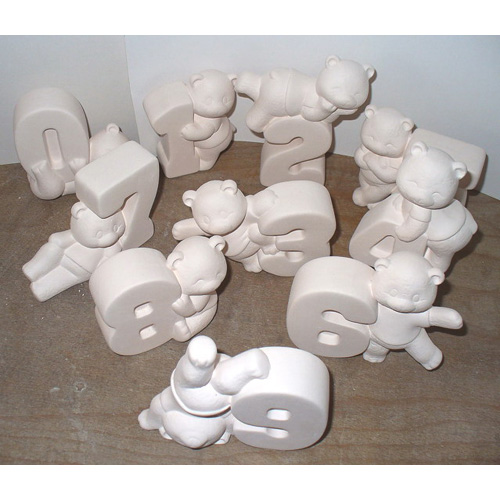 Ensemble de réf. 04-006-3, 04-006-9, 04-086-1, 04-086-5, 04-006-3, 04-086-2; biscuits de faïence fine (céramique brute à peindre ou à émailler)