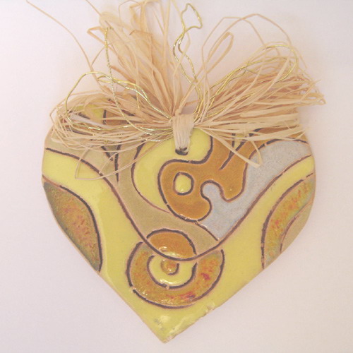 Réf. 13-164-1a2 coeur, figurine plate / pendentif peint, L 5,7 x l 0,5 x h 5,5