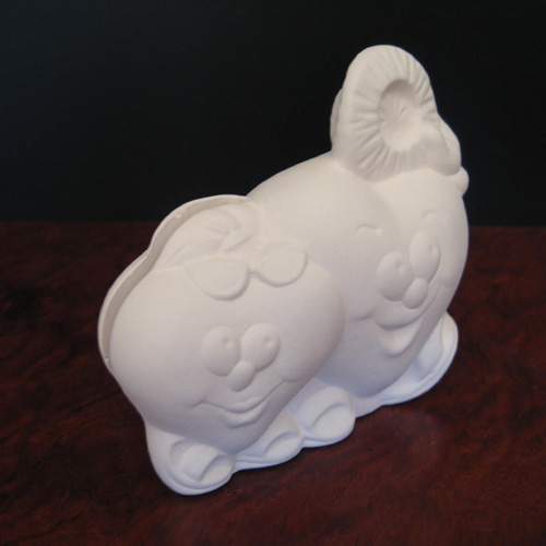 Réf. N°190-2 coeurs, porte-nom / porte-photo, L 8 x l 3 x h 7,5 ; biscuit de faïence fine (céramique brute à peindre ou à émailler)