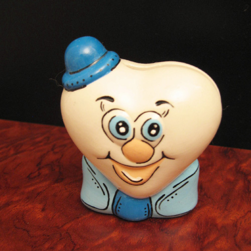 Réf. N°168-1a1 coeur garçon, figurine peinte, L 5,5 x l 3,5 x h 6,5