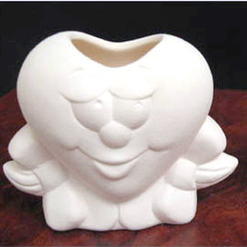Réf. N°168-1 coeur garçon, figurine, L 5,5 x l 3,5 x h 6,5 ; biscuit de faïence fine (céramique brute à peindre ou à émailler)