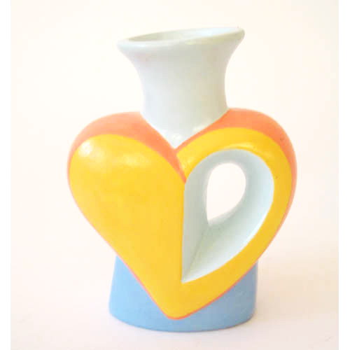Réf. N°171a coeur, vase / bougeoir peint, L 8 x l 4 x h 10