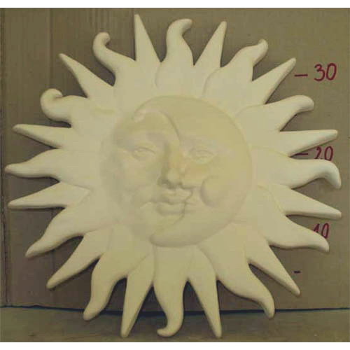 Réf. 13-001 Soleil et Lune, sculpture murale, diam. 38 ; biscuit de faïence fine (céramique brute à peindre ou à émailler)